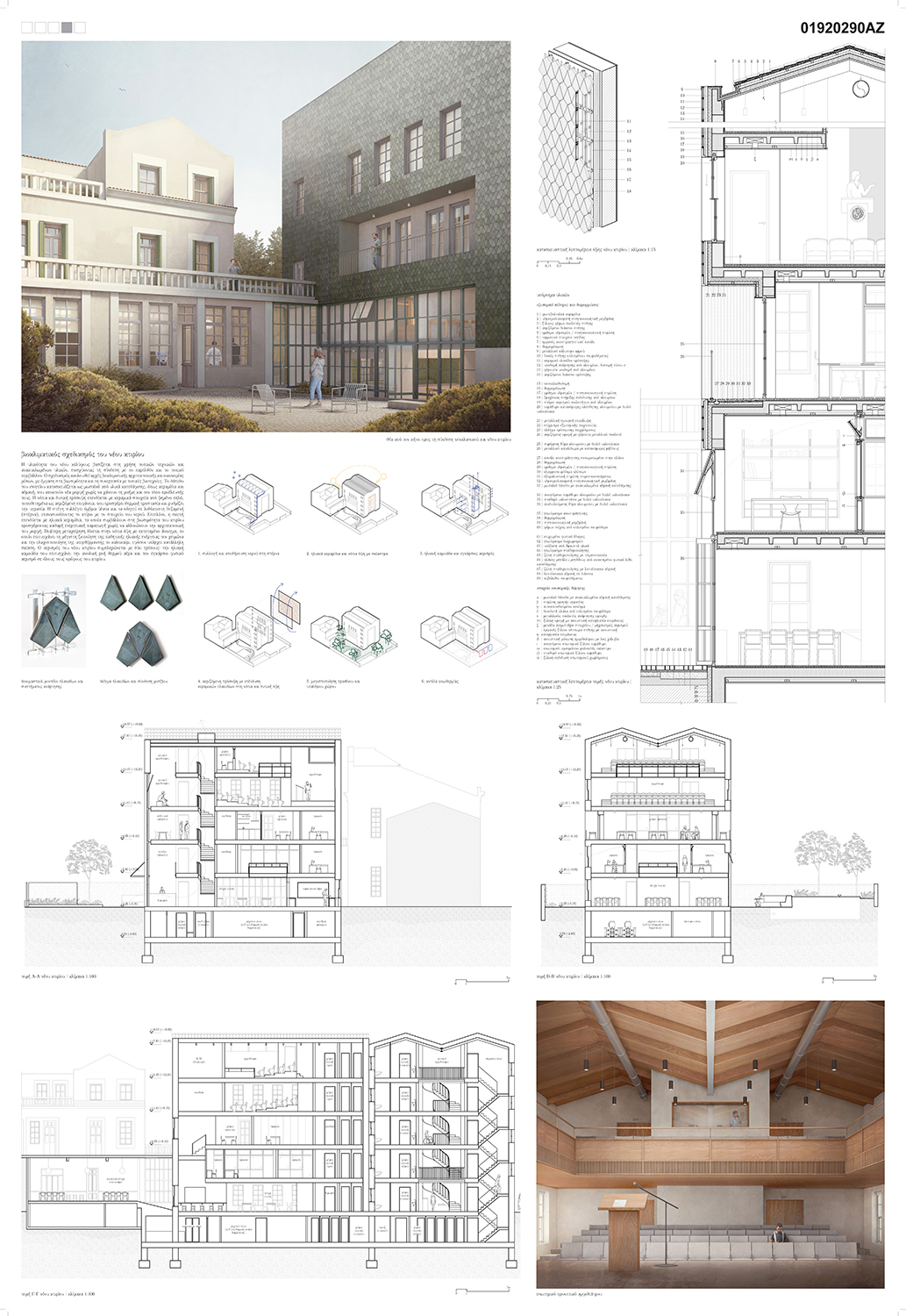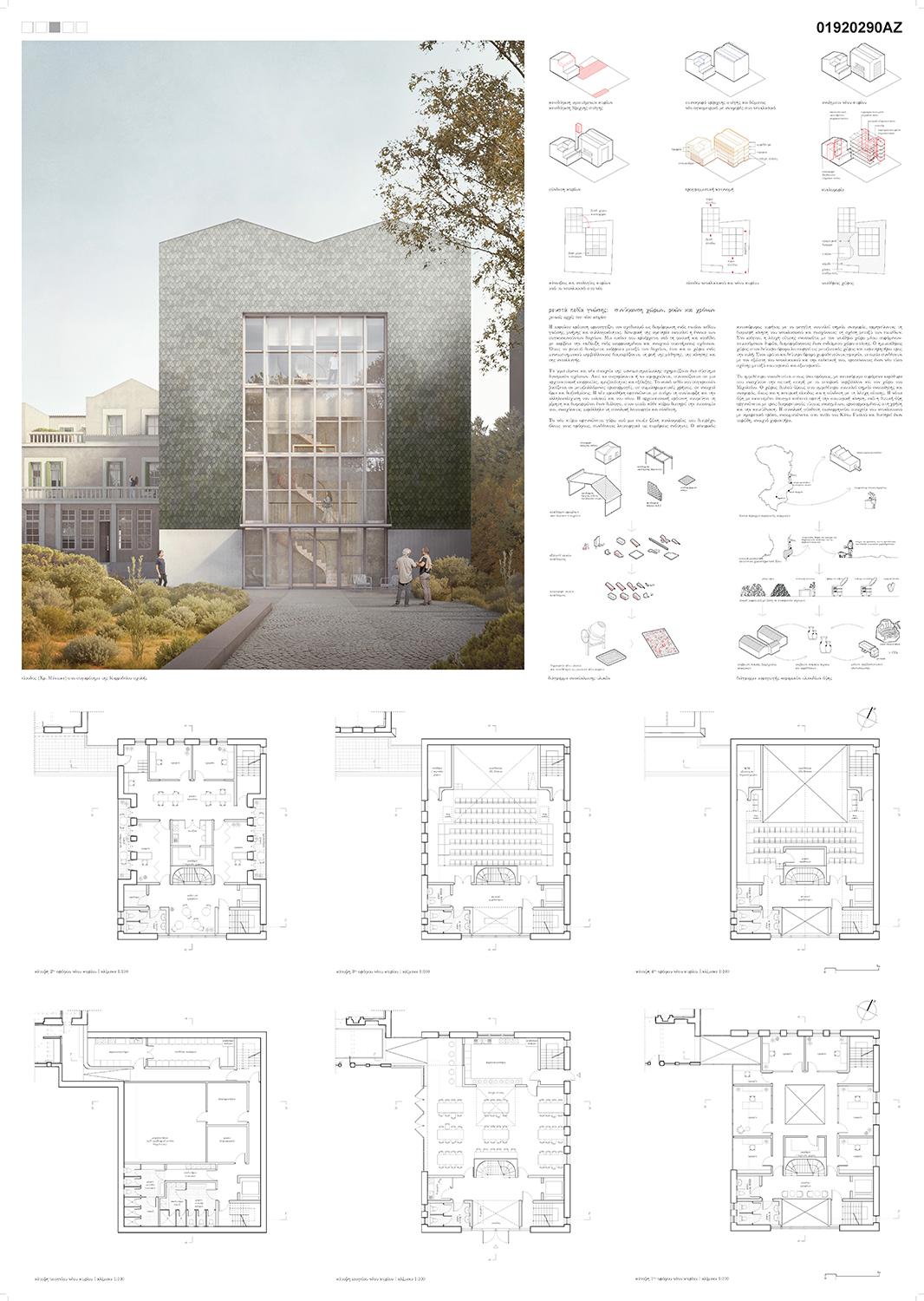 The proposal focuses on the symbiosis of old and new, utilising the instrument of mimesis as a means for architectural dialogue. Here, mimesis is not understood as faithful copying of the old, but as a mechanism for identifying those immutable architectural elements that, through an abstract process, can be integrated into the new expression of the Karradeios extension. Existing and new elements are coordinated into an architecture of tempering, reciprocity, and evolution. Spaces are designed as an open and porous system, where knowledge is not confined to enclosed rooms but diffuses into corridors, passageways, and outdoor areas, encouraging chance encounters and exchanges.