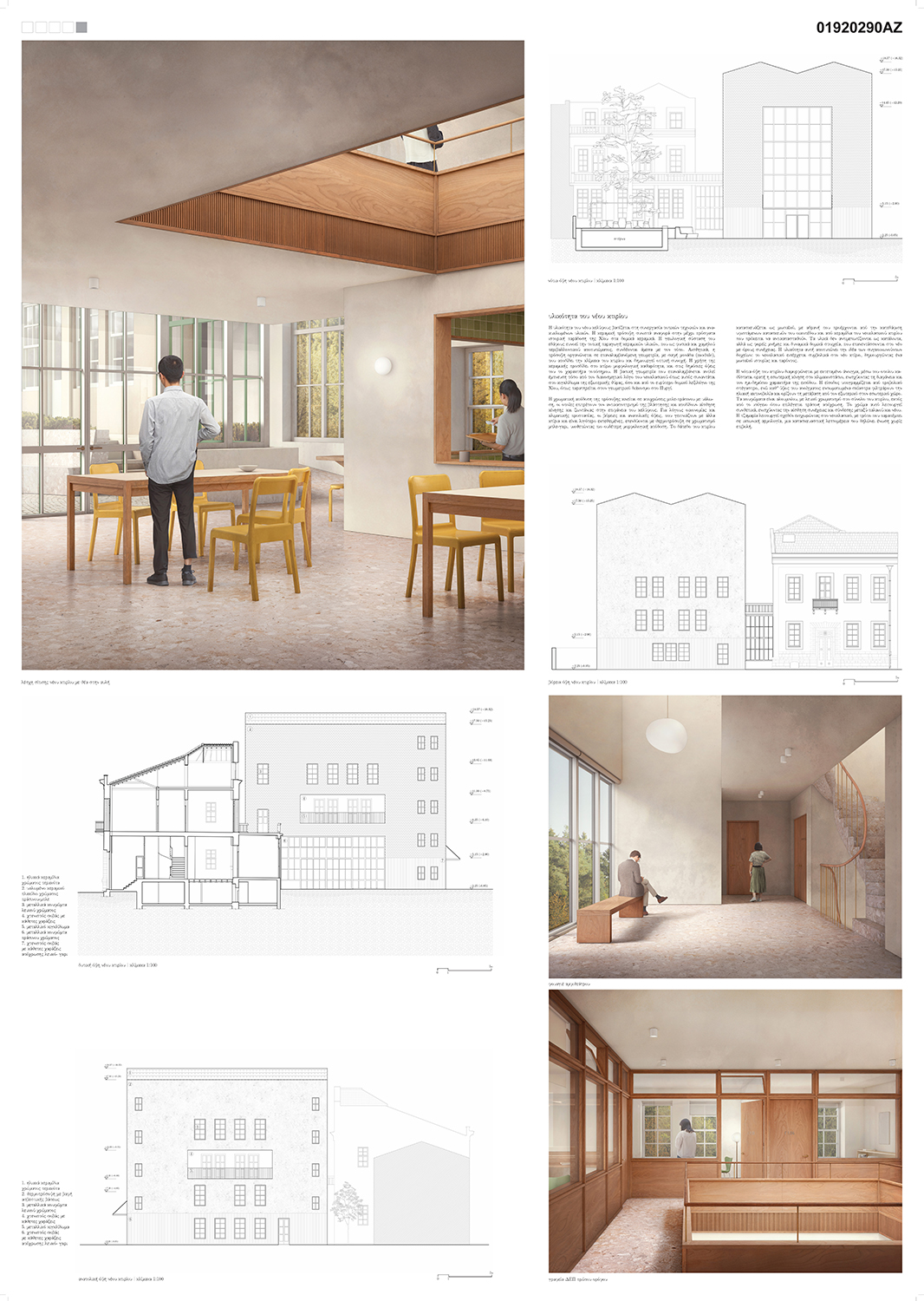 Programmatic Interaction: The proposal’s structure reinforces the relationship of continuity. The community space in the neoclassical building directly communicates with the dining hall in the new one. The offices on the second floor of both buildings are connected via the existing terrace and its extension. The uses are mutually augmented, creating a unified functional whole.