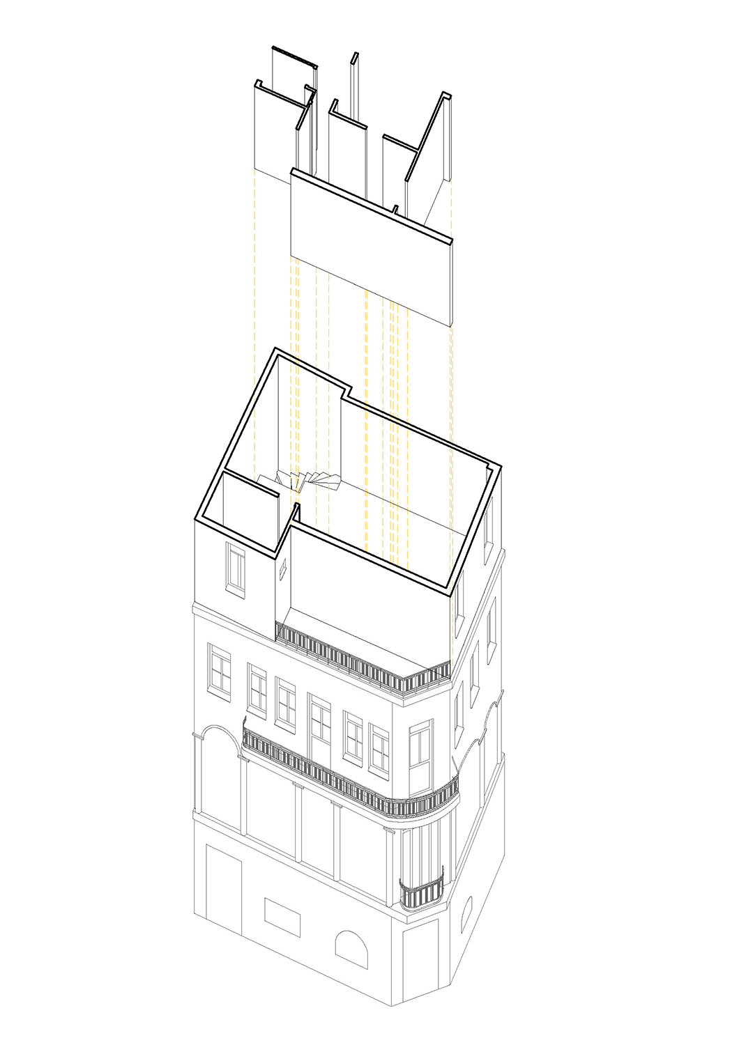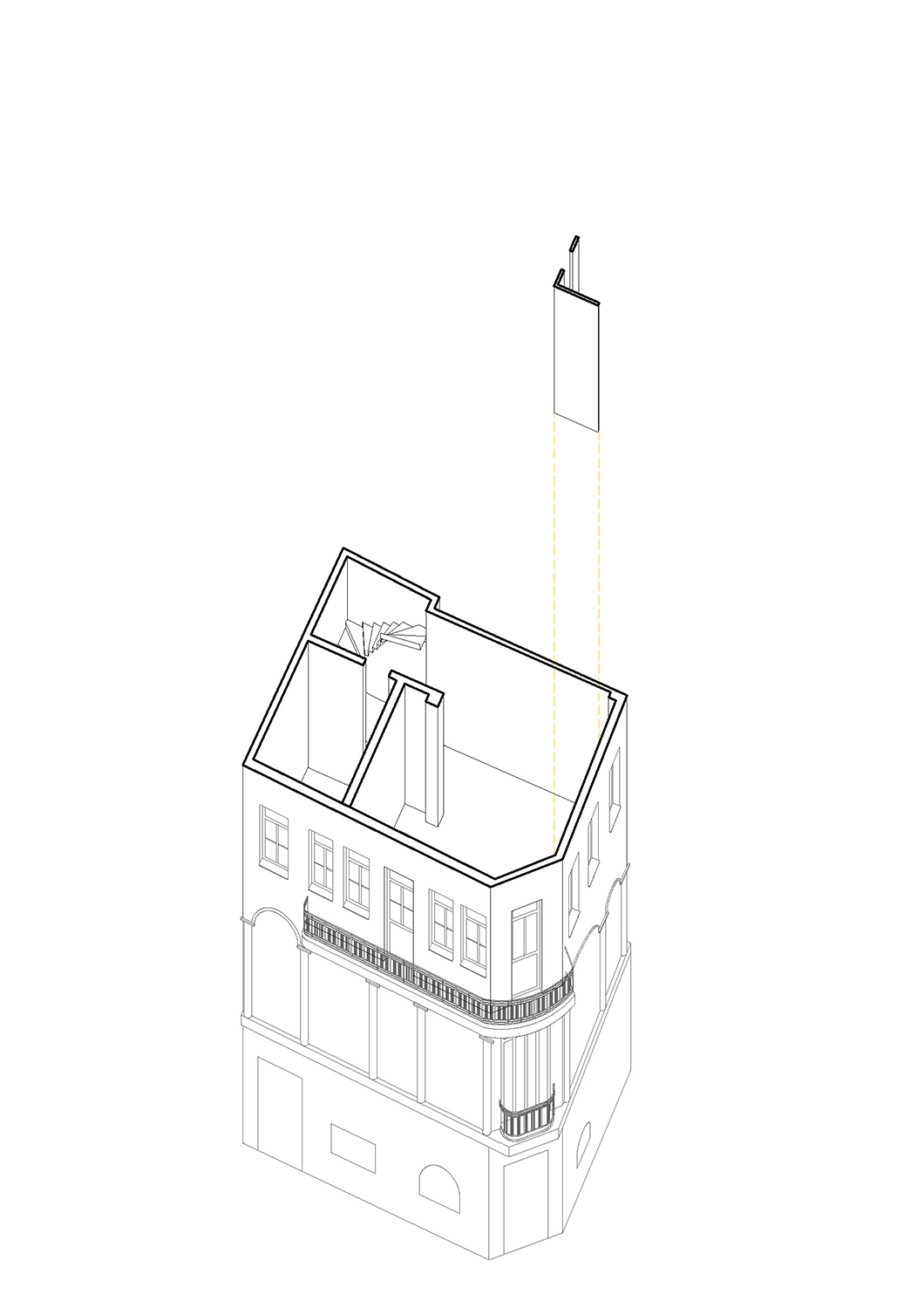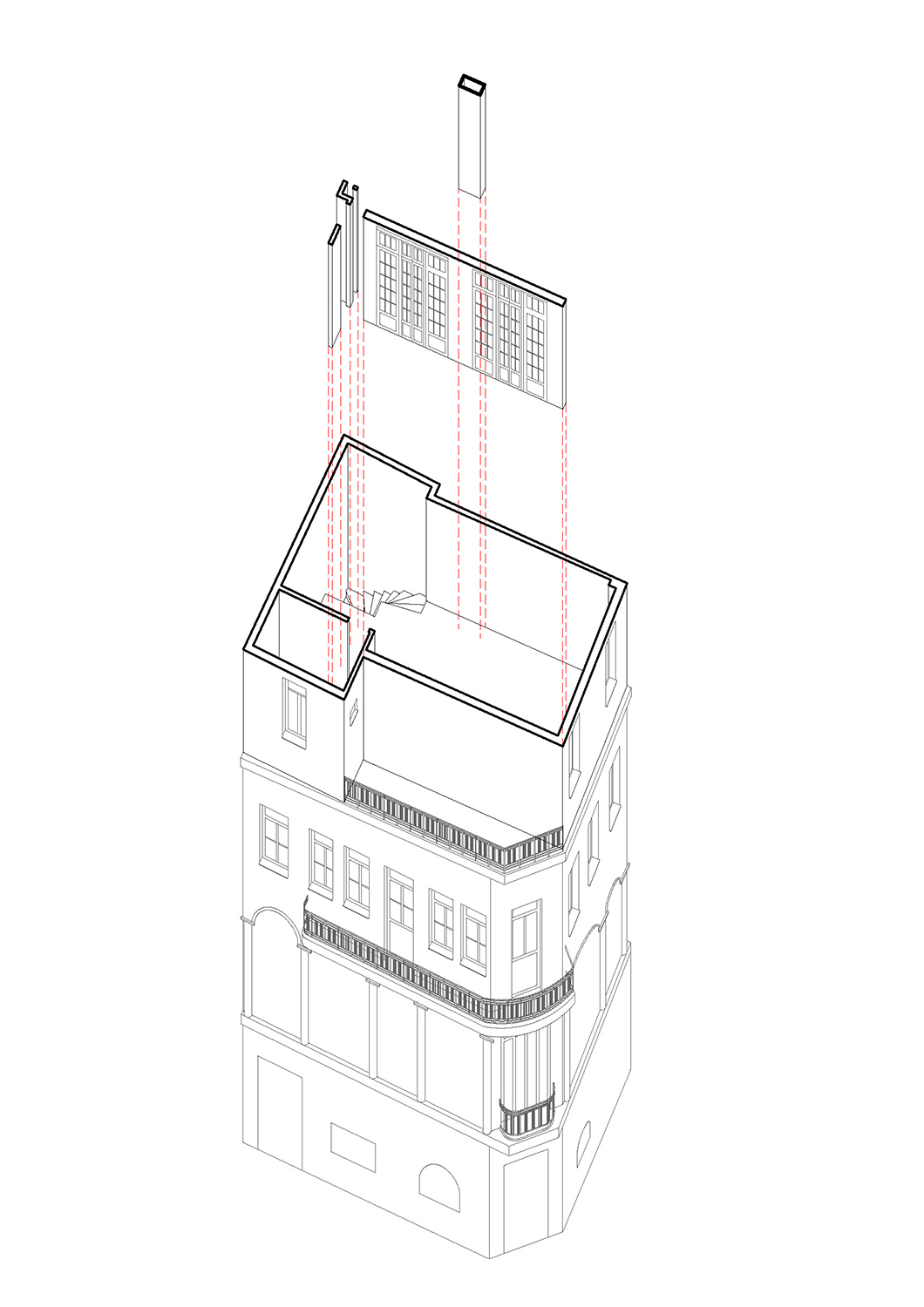 Local Local redesigned the upper floors of an early-20th-century building that stands right in the middle of Monastiraki with unobstructed views of the Acropolis. The building has been used as a family-owned antiques shop for almost 100 years, with the three upper floors having very limited access to the public. In 2017, the third generation of the family began using part of the building as a contemporary art gallery, and in 2021 a proper renovation began to completely transform the upper floors into a stack of interconnected spaces for exhibiting contemporary art.